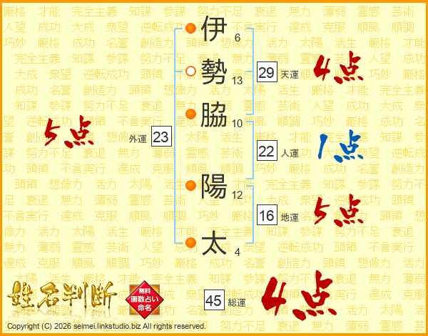 伊勢脇陽太さんの総運は45画の4点!