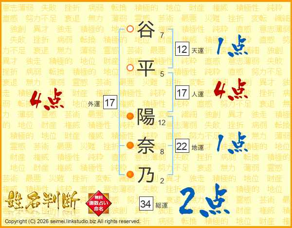 谷平陽奈乃さんの総運は34画の2点!
