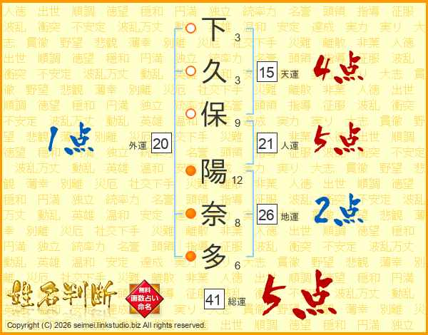 下久保陽奈多さんの総運は41画の5点!