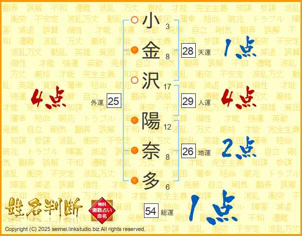 小金沢陽奈多さんの人運は29画の4点!