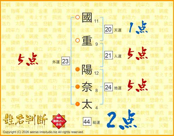 國重陽奈太さんの総運は44画の2点!