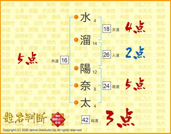 水溜陽奈太さんの天運は18画の4点!