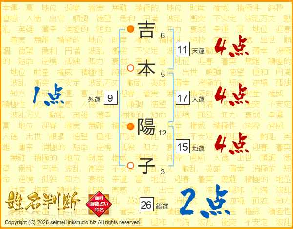 吉本陽子さんの総運は26画の2点!