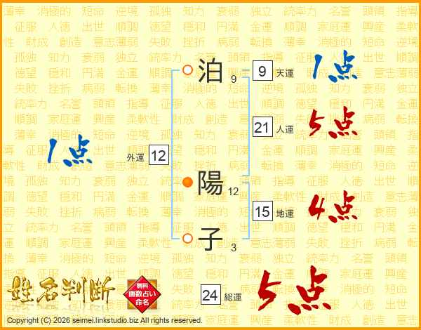 泊(9画) 陽(12画)子(3画)