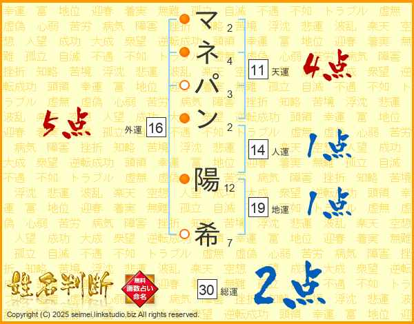 マネパン陽希さんの外運は16画の5点!