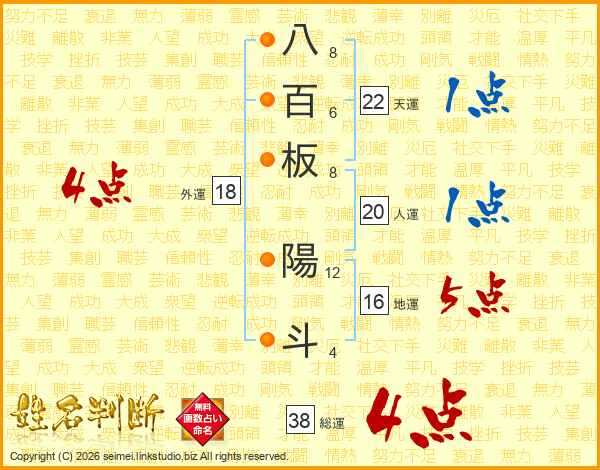 八百板陽斗さんの総運は38画の4点!