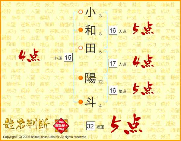 小(3画)和(8画)田(5画) 陽(12画)斗(4画)