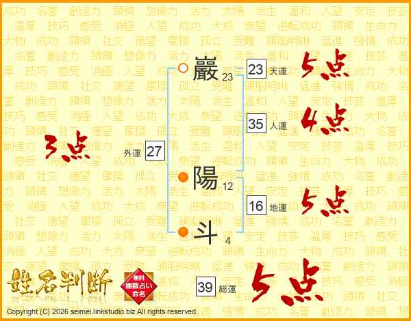 巖陽斗さんの総運は39画の5点!