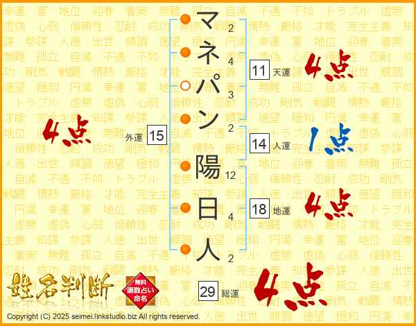マネパン陽日人さんの総運は29画の4点!