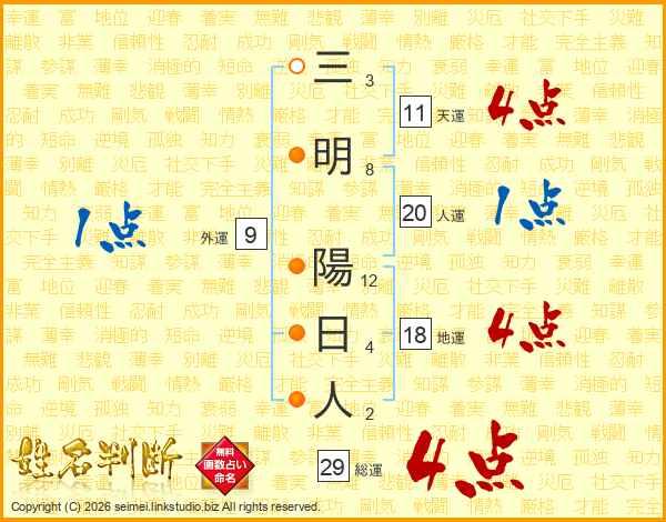 三明陽日人さんの総運は29画の4点!