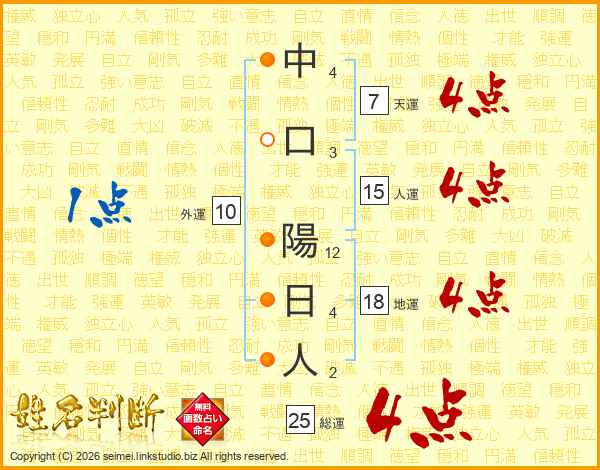 中口陽日人さんの総運は25画の4点!