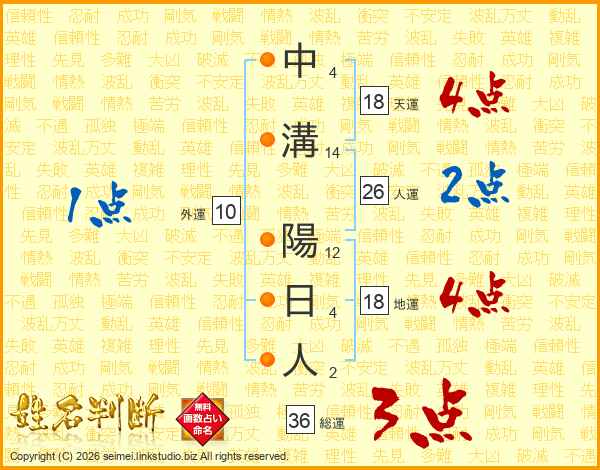 中溝陽日人さんの天運は18画の4点!