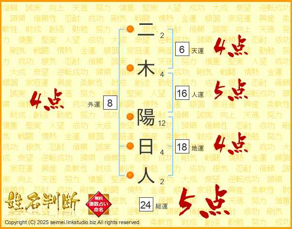 二(2画)木(4画) 陽(12画)日(4画)人(2画)