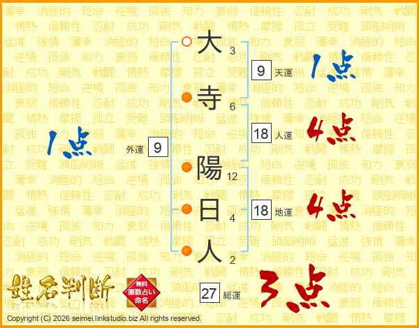 大寺陽日人さんの総運は27画の3点!