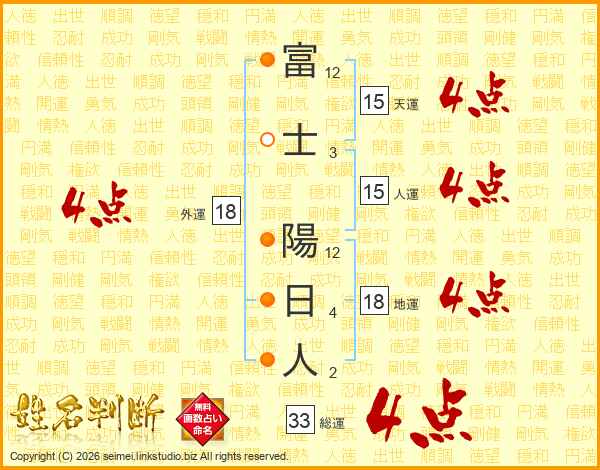 富士陽日人さんの総運は33画の4点!