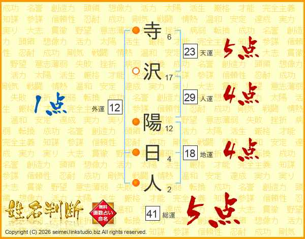 寺(6画)沢(17画) 陽(12画)日(4画)人(2画)