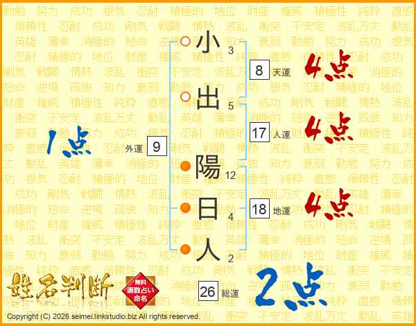 小出陽日人さんの総運は26画の2点!