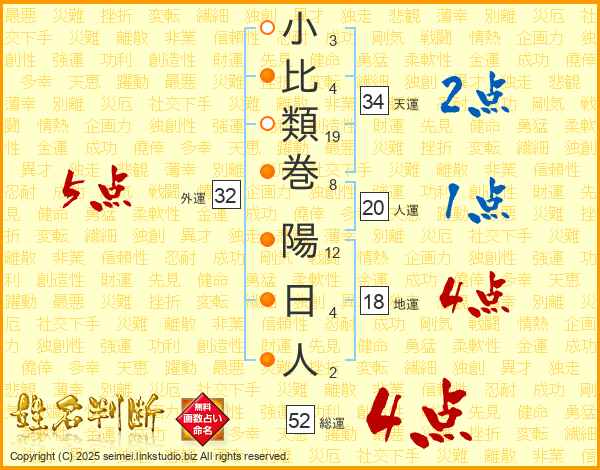 小(3画)比(4画)類(19画)巻(8画) 陽(12画)日(4画)人(2画)