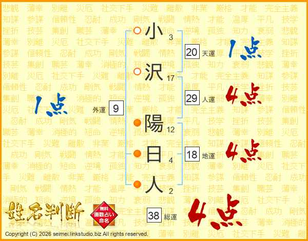小沢陽日人さんの総運は38画の4点!