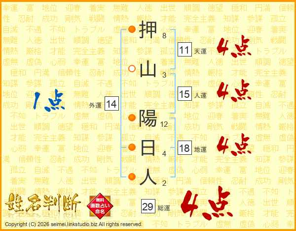 押山陽日人さんの総運は29画の4点!