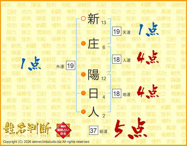 新(13画)庄(6画) 陽(12画)日(4画)人(2画)