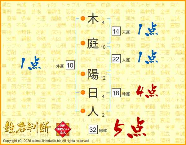 木庭陽日人さんの総運は32画の5点!