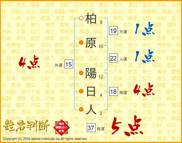 柏(9画)原(10画) 陽(12画)日(4画)人(2画)