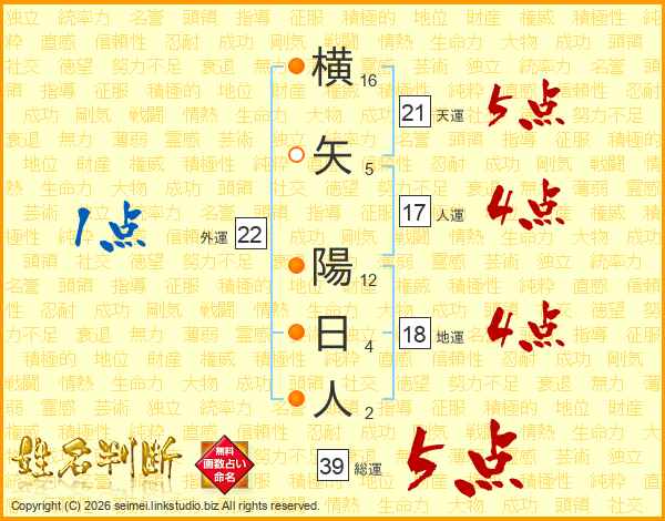横(16画)矢(5画) 陽(12画)日(4画)人(2画)