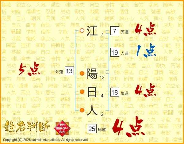 江陽日人さんの総運は25画の4点!