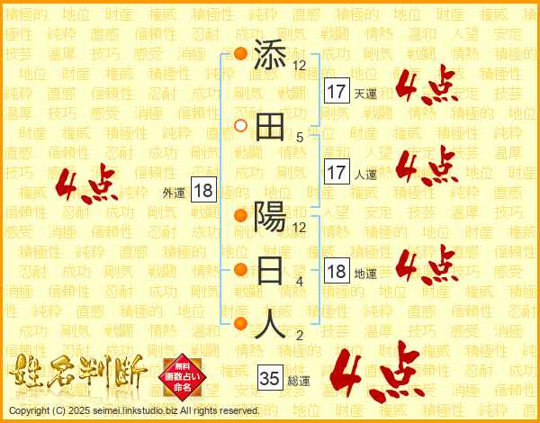 添(12画)田(5画) 陽(12画)日(4画)人(2画)