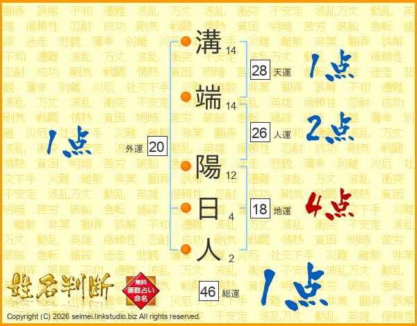 溝端陽日人さんの総運は46画の1点!
