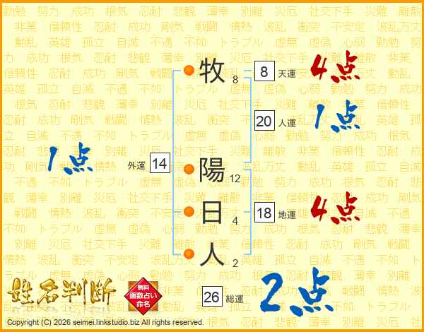 牧陽日人さんの総運は26画の2点!