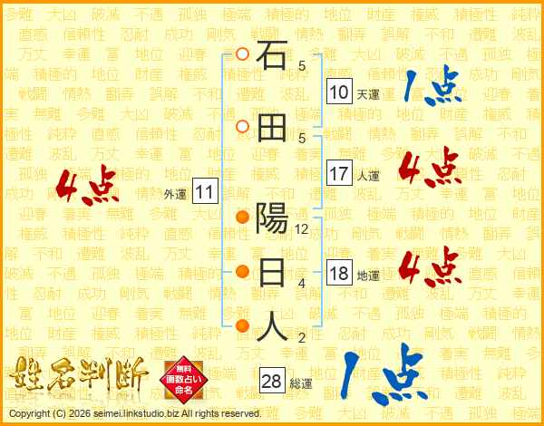 石田陽日人さんの総運は28画の1点!