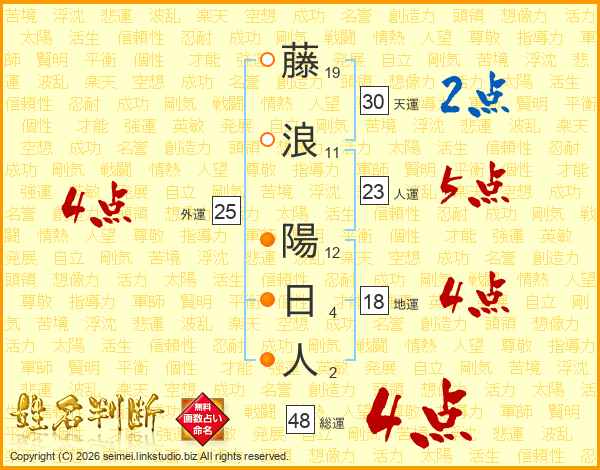 藤浪陽日人さんの総運は48画の4点!