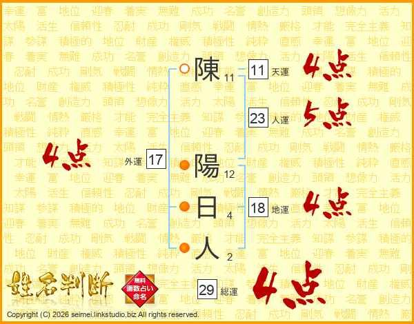 陳陽日人さんの総運は29画の4点!