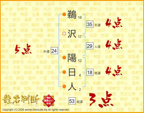 鵜沢陽日人さんの天運は35画の4点!