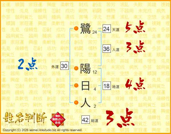 鷺陽日人さんの総運は42画の3点!