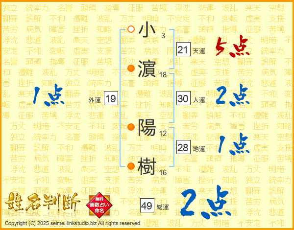 小(3画)濵(18画) 陽(12画)樹(16画)