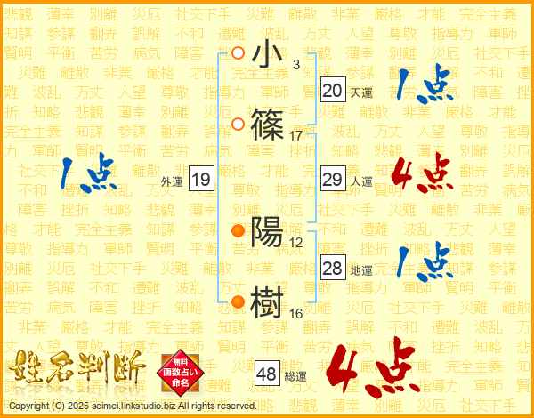小篠陽樹さんの総運は48画の4点!