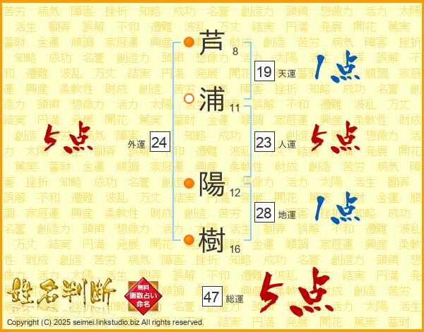 芦(8画)浦(11画) 陽(12画)樹(16画)