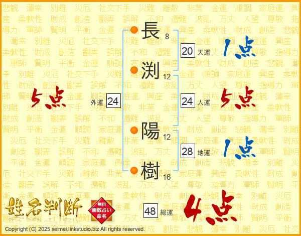 長渕陽樹さんの総運は48画の4点!