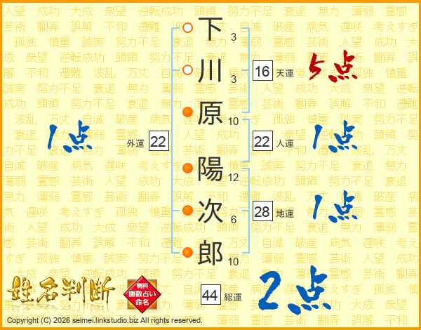下(3画)川(3画)原(10画) 陽(12画)次(6画)郎(10画)