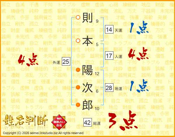 則本陽次郎さんの総運は42画の3点!