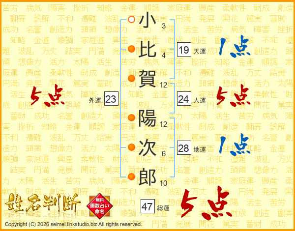 小比賀陽次郎さんの総運は47画の5点!