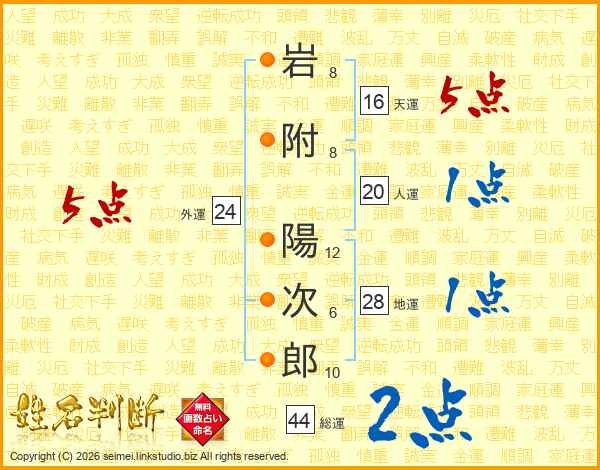 岩附陽次郎さんの総運は44画の2点!