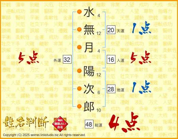 水無月陽次郎さんの総運は48画の4点!
