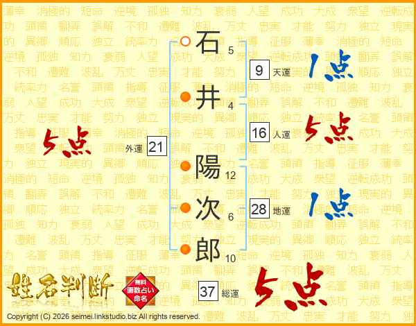 石(5画)井(4画) 陽(12画)次(6画)郎(10画)