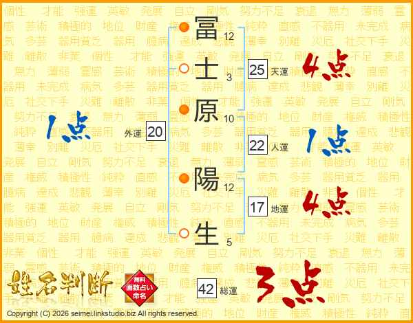 冨士原陽生さんの天運は25画の4点!