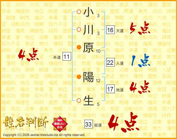 小川原陽生さんの総運は33画の4点!
