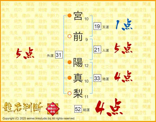宮前陽真梨さんの外運は31画の5点!